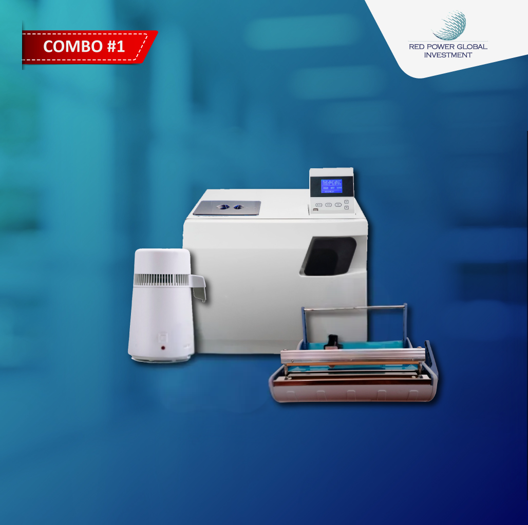 Equipa tu clínica o laboratorio con tecnología confiable y avanzada: Autoclave Clase B de 23L para esterilización profesional, Selladora Térmica para empaques seguros y duraderos, y un Destilador de Agua que garantiza máxima pureza en cada gota. Ideal para consultorios, centros odontológicos y hospitales que no se conforman con menos.